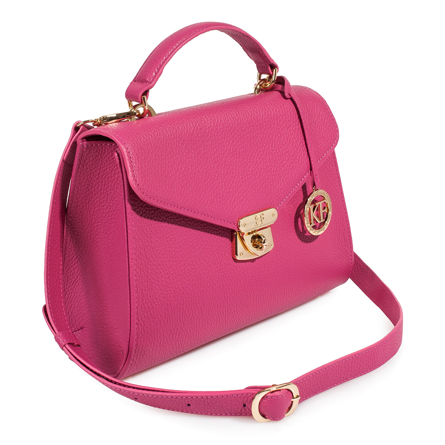 Leather Top Handle Bag, Fuchsia Leather Handbag Top Handle, Women's Leather Bag KF-2818