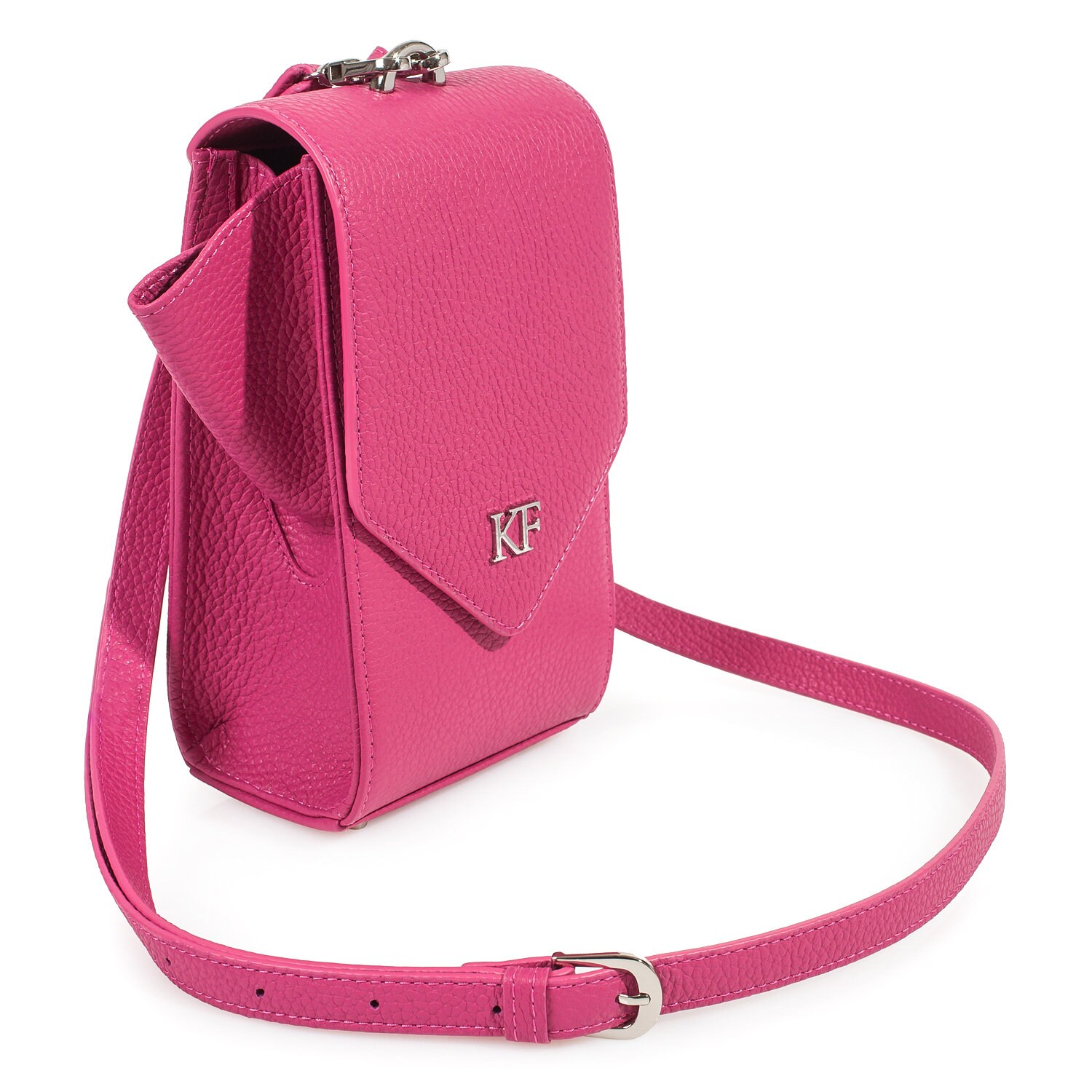 Leather Cross body Bag, Fuchsia Leather Shoulder Bag, Women's Leather Crossbody Bag, Leather bag KF-3755