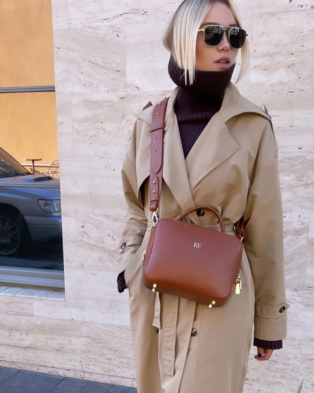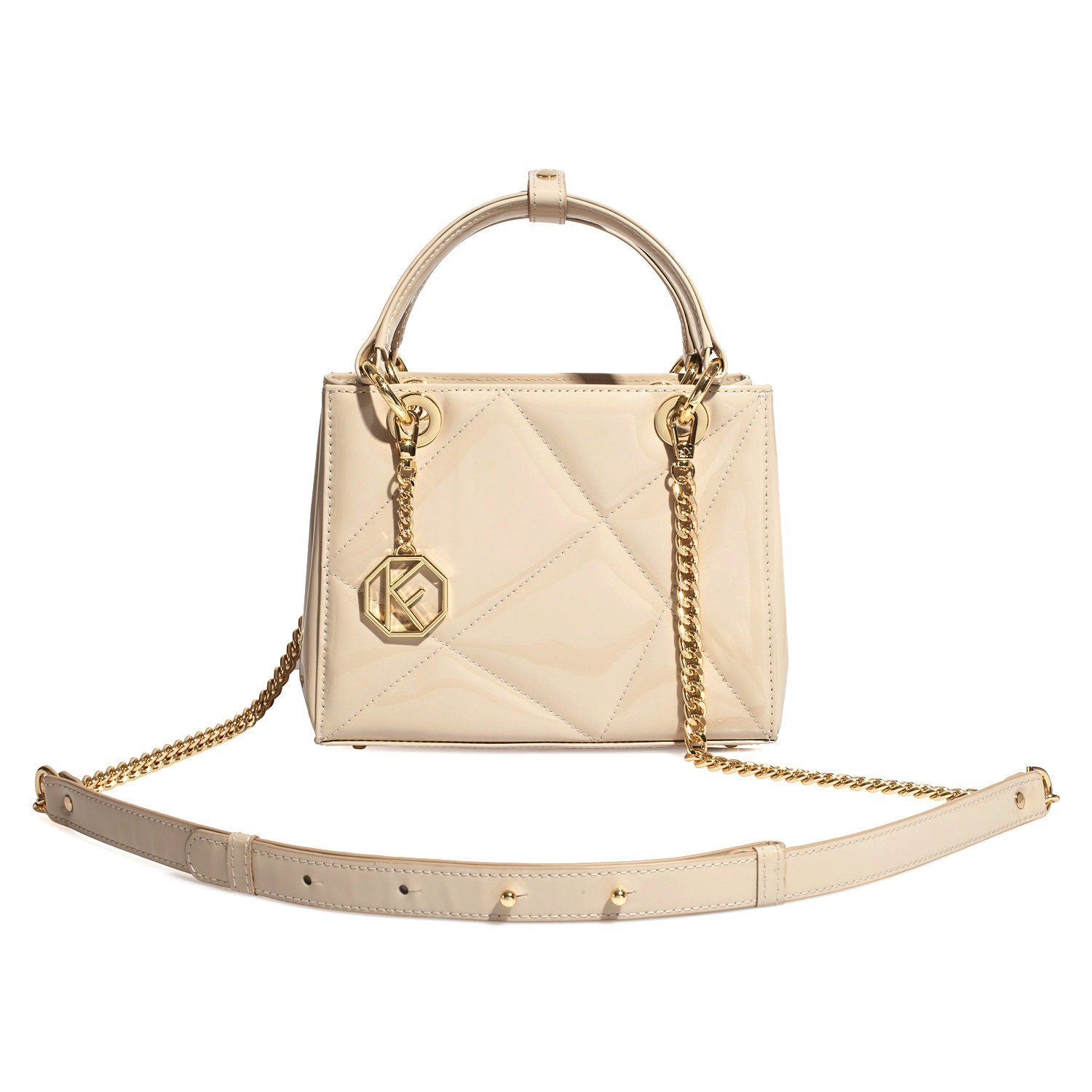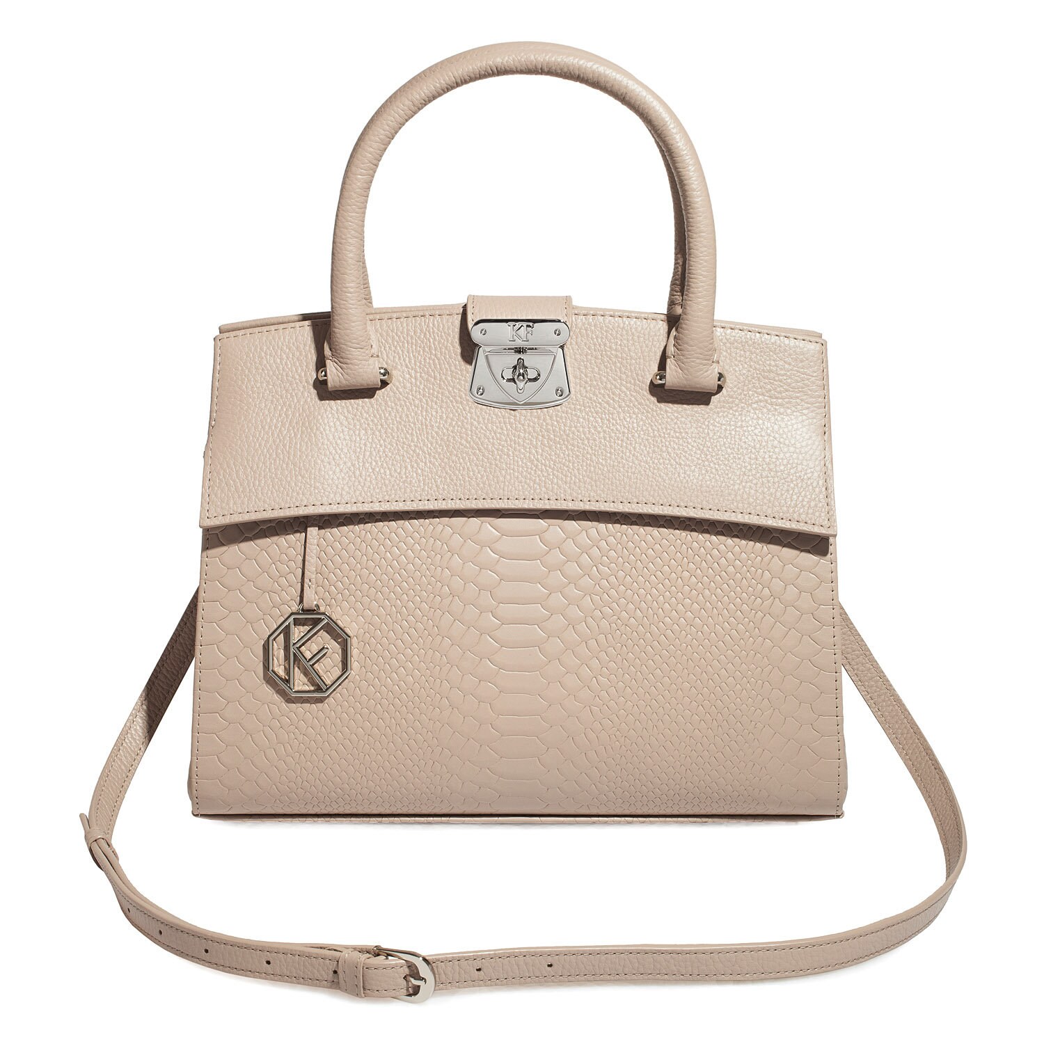Gray beige genuine leather woman shoulder bag from ukrainian designer Katerina Fox. Fashionable and elegant modern bag KF for bright girls and women. This bag is able to attract attention and highlight your exquisite taste. The internal space of a bag is equipped with one spacious compartment and one zipper pocket. The bag is closed with a zipper. The length of the strap is adjustable. The kit also includes a storage bag.