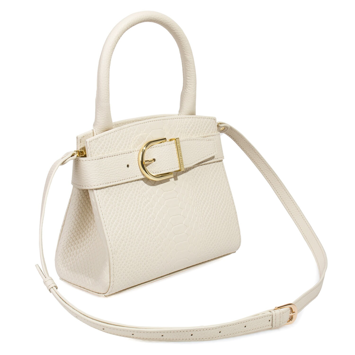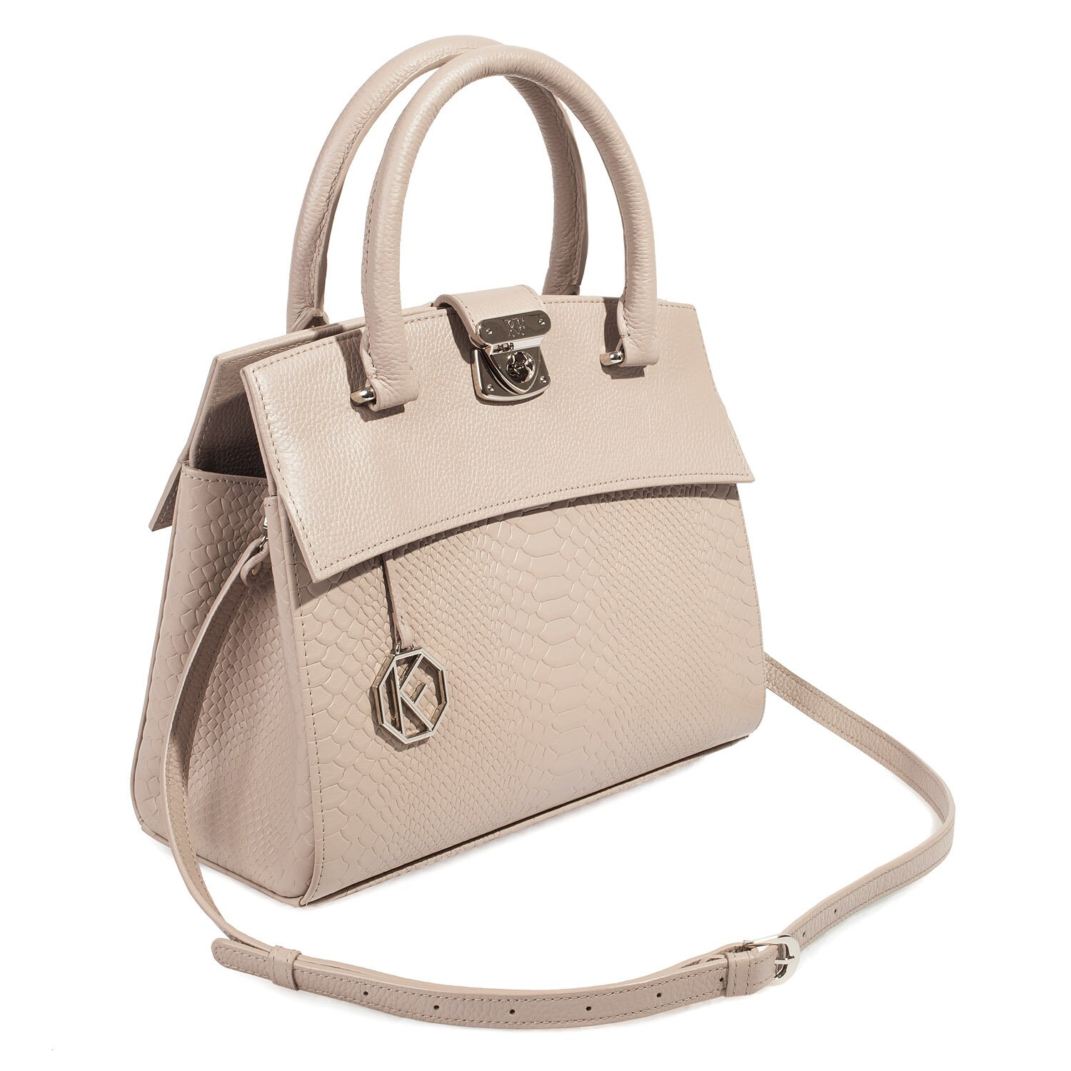 Gray beige genuine leather woman shoulder bag from ukrainian designer Katerina Fox. Fashionable and elegant modern bag KF for bright girls and women. This bag is able to attract attention and highlight your exquisite taste. The internal space of a bag is equipped with one spacious compartment and one zipper pocket. The bag is closed with a zipper. The length of the strap is adjustable. The kit also includes a storage bag.
